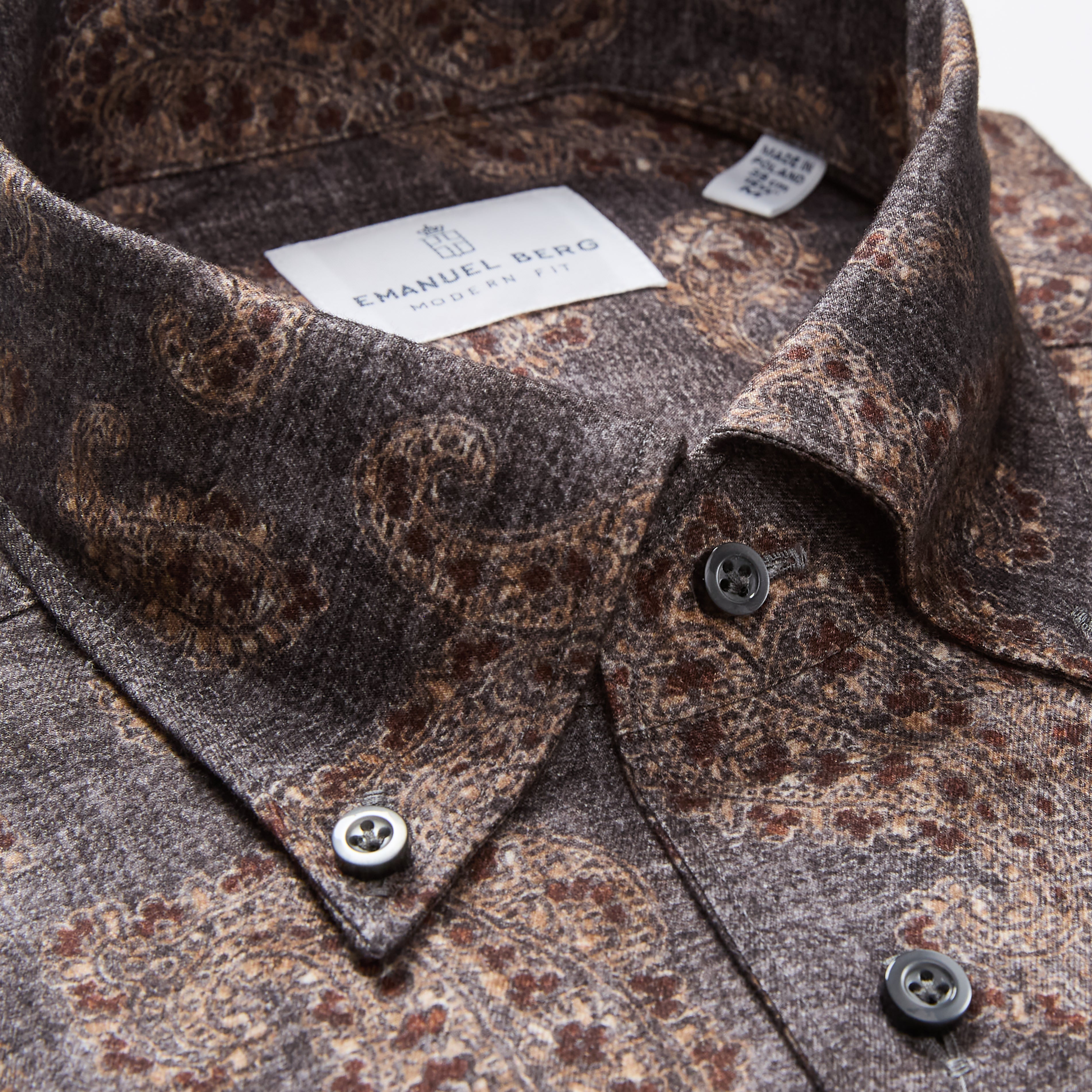 A sophisticated take on everyday dressing, this dark grey flannel shirt features a tonal paisley print that adds texture and interest. Made from premium cotton for lasting comfort. 100% Cotton