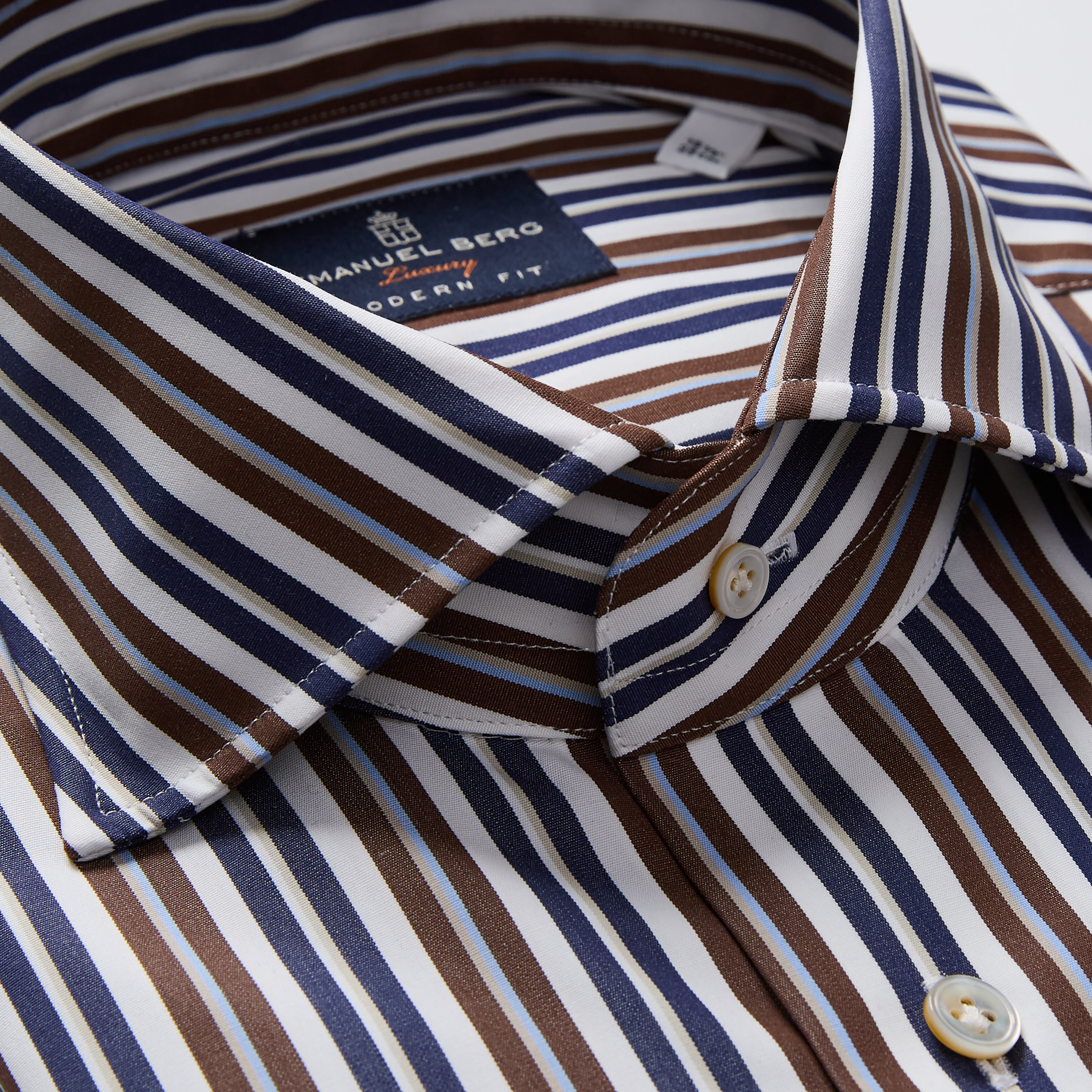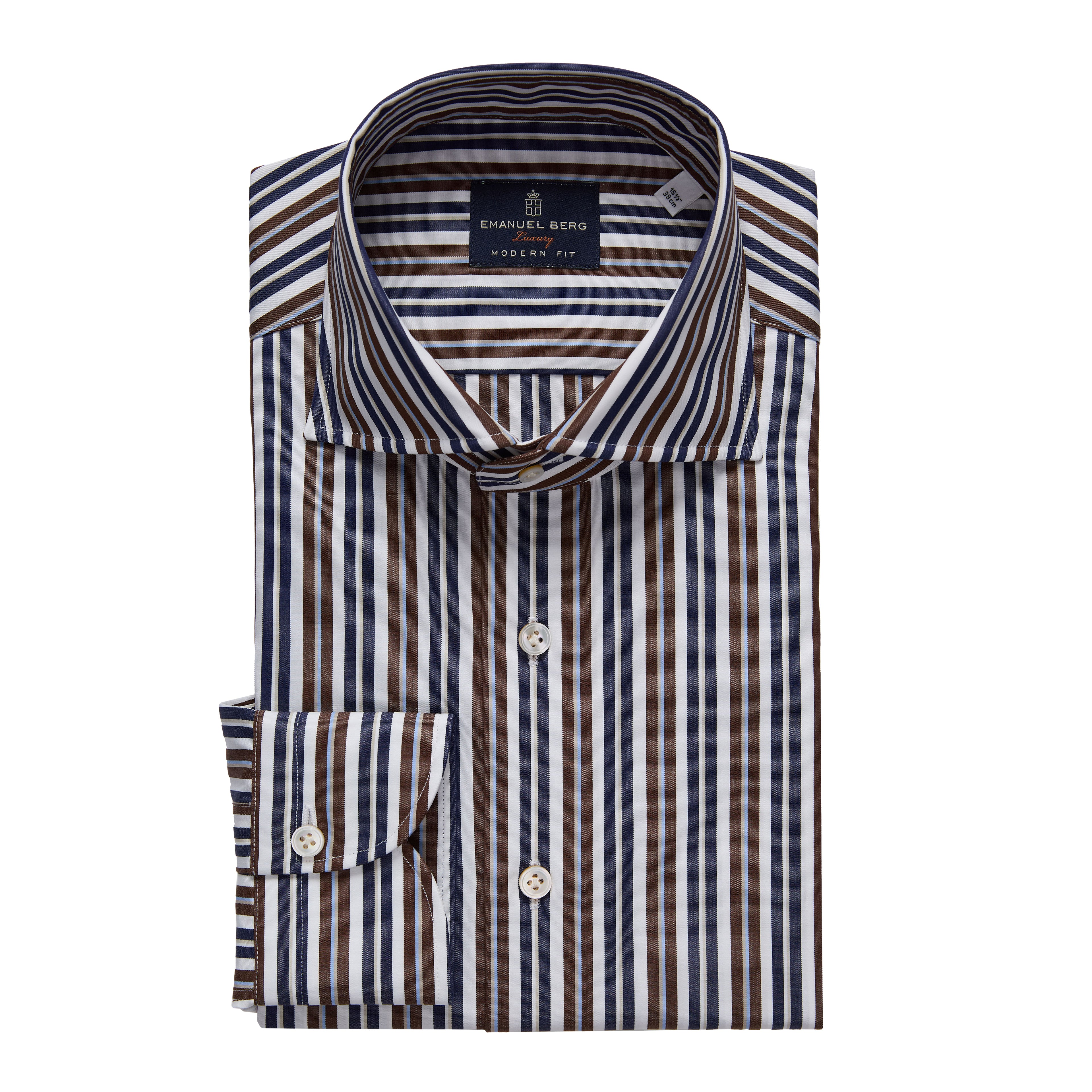 Featuring crisp vertical stripes and a polished finish, this poplin shirt balances structure and ease with its lightweight hand and elegant drape. 100% Cotton