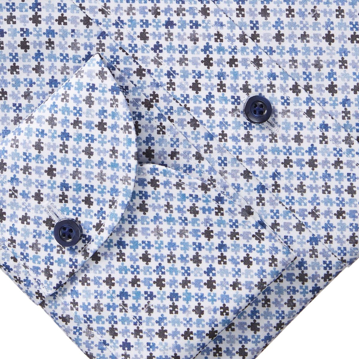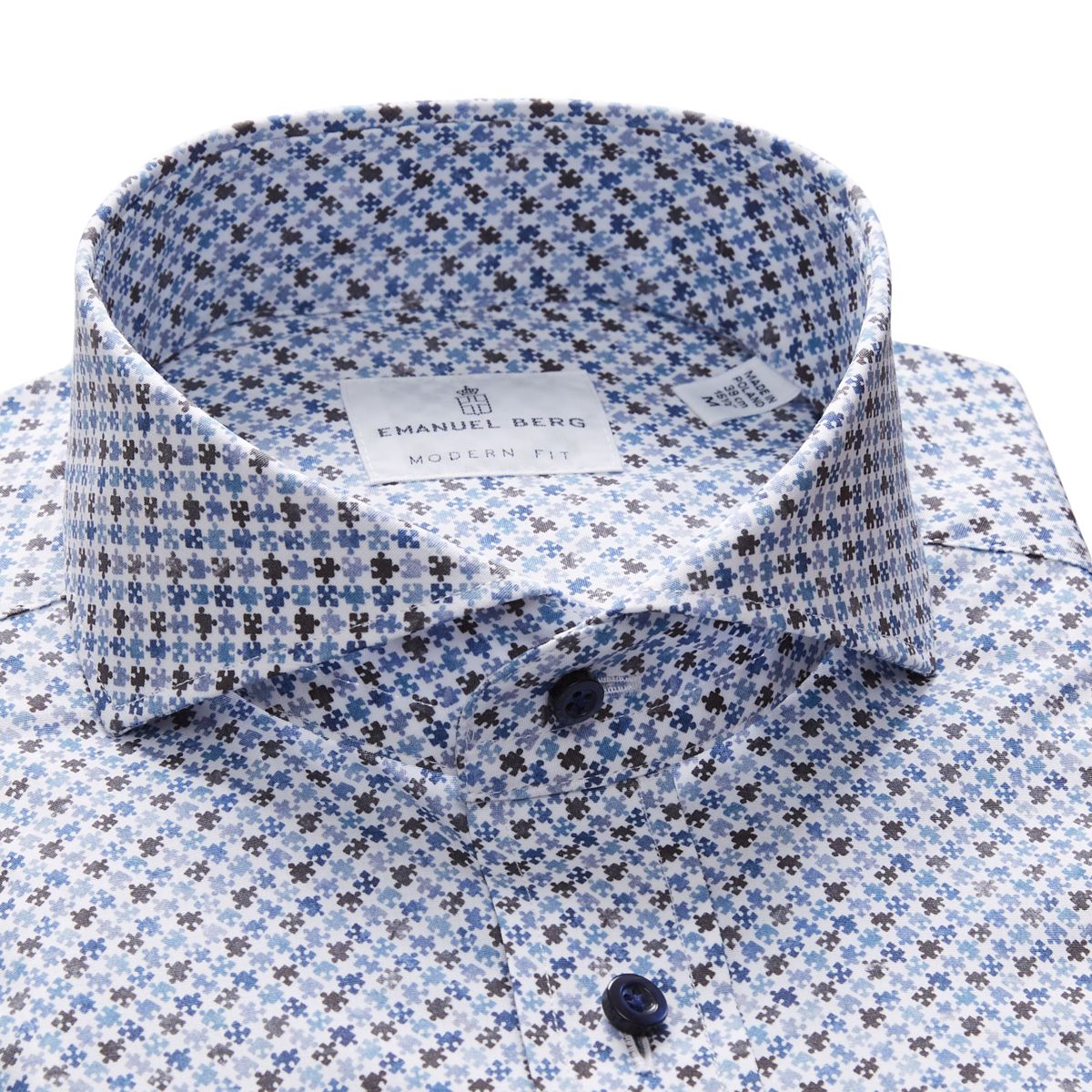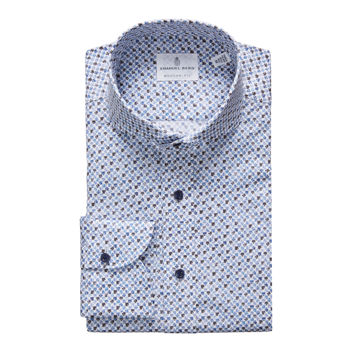 A contemporary statement, this modern fit shirt is designed in stretch poplin with an all-over geometric motif. Combining comfort with sharp tailoring, it offers versatile style—equally suited for smart casual dressing or layered under a blazer for a polished look.